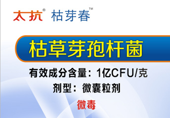 太抗系列生物農(nóng)藥介紹——枯芽春篇發(fā)布日期:2016.03.02點(diǎn)擊量:8006一、產(chǎn)品特點(diǎn)特點(diǎn):我國(guó)唯一正式登記為微膠囊劑的生物殺菌劑,重點(diǎn)用于土傳病害防治,尤其是對(duì)枯萎病防治,促進(jìn)根系生長(zhǎng);食品安全性:毒性低于食鹽,有機(jī)認(rèn)證在辦理中;農(nóng)作物安全:對(duì)作物安全無(wú)藥害。 二、枯草芽孢桿...