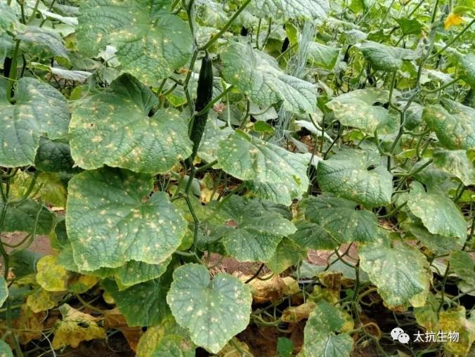 葉部病害嚴重、早衰、黃葉多(靶斑病、少量霜霉病和角斑病)