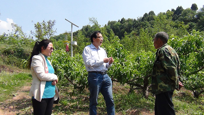 植玉蓉站長與黃永博士討論桃縮葉病的發(fā)病規(guī)律
